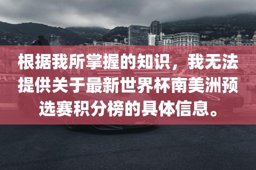 根据我所掌握的知识,我无法提供关于最新世界杯南美洲预选赛积分榜的具体信息。