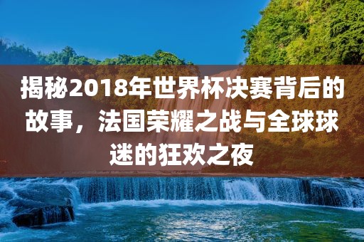 摘要:,,本文揭示了2018年世界杯决赛背后的故事,展现了法国队的荣耀之战和全球球迷的狂欢之夜。在这场激动人心的比赛中,法国队通过精彩的团队合作和坚韧的斗志,最终赢得了冠军。这场决赛不仅成为了足球史上的经典之战,也激发了全球球迷的热情和激情,成为了一个难忘的夜晚。