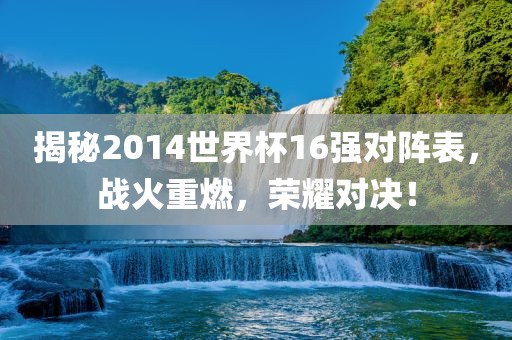 摘要:2014世界杯战火重燃,16强荣耀对决的对阵表揭晓。各支球队经过激烈角逐,最终晋级16强,展开荣誉之战。球迷们翘首以待,期待这场足球盛事的精彩对决和激情瞬间。