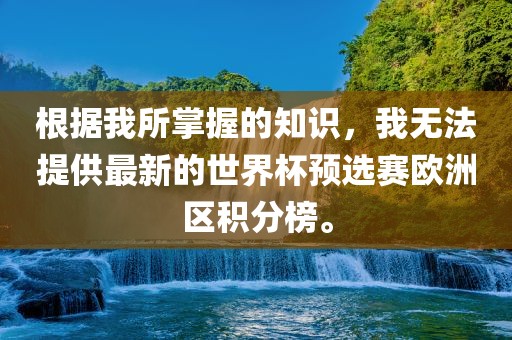 摘要:由于我所掌握的知识有限,无法提供最新的世界杯预选赛欧洲区积分榜。建议关注官方渠道或体育新闻以获取最新、最准确的积分榜信息。