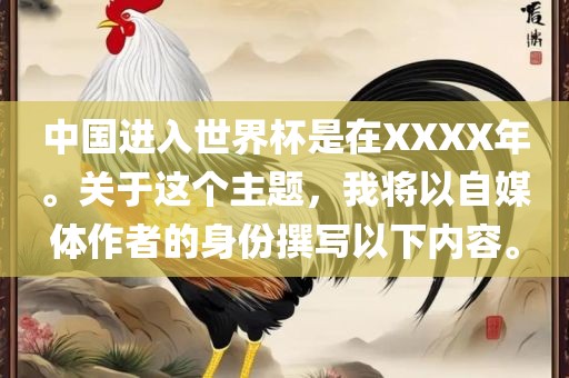 中国进入世界杯是在XXXX年。关于这个主题,我将以自媒体作者的身份撰写以下内容。