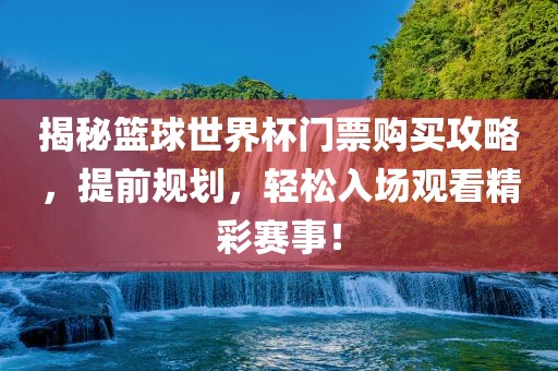 购买篮球世界杯门票需要提前规划、了解相关信息和渠道、遵守规定等,只有做好充分的准备,才能顺利购买到门票并享受精彩的比赛,希望本文的介绍能够帮助你顺利购买到篮球世界杯门票,实现亲临现场观看比赛的梦想!无论你是球迷还是热爱体育的人,这个攻略都将为你提供宝贵的帮助,让我们一起期待这场精彩的篮球盛宴吧!