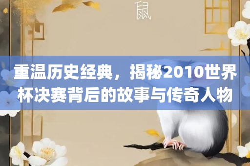 重温历史经典,探寻2010年世界杯决赛背后的故事与传奇人物。这场比赛充满了激情与荣耀,背后蕴藏着无数英雄的努力与奋斗。重温那些激动人心的时刻,感受赛场上的紧张氛围和传奇人物的辉煌表现。这是一段令人难以忘怀的历史,值得回味和珍藏。