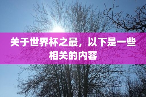 关于世界杯之最,以下是一些相关的内容